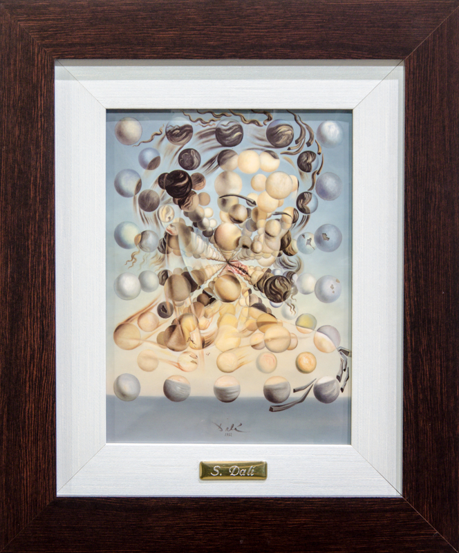 Reproduction of one of the most famous works of Salvador Dalí, artisanally produced by applying several layersof varnish on a foil. Elegant wooden frame of wengue exclusive for Surrealism Store and Llibreria Surrealista.