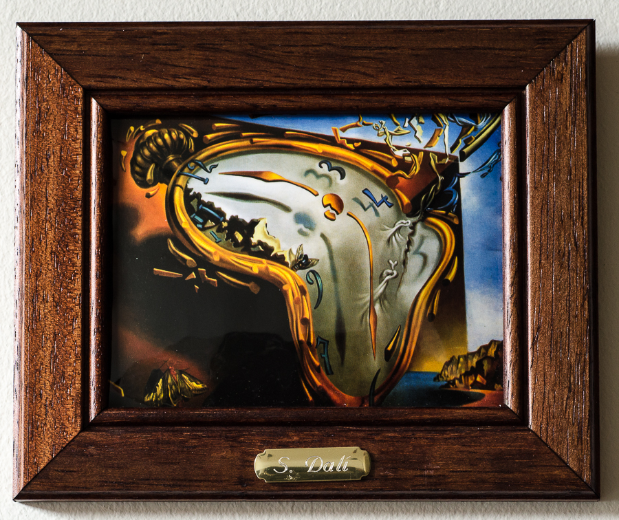 En 1954 Salvador Dalí pintó esta nueva versión de un reloj blando, que en este caso explota, avanzando un paso más en la relación duro-blando que había iniciado en la "Persistencia de la memoria". A esta obra se conoce con dos títulos "Reloj blando estallando en 888 partículas después de veinte años de total inmovilidad" o "Reloj blando en el momento de su primera explosión"