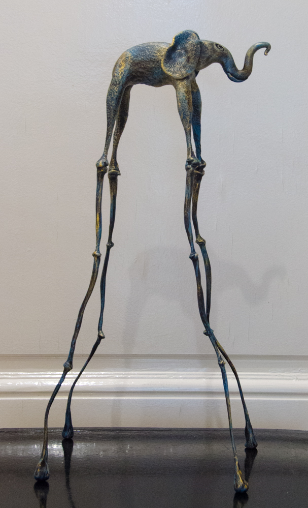 Les Éléphants surréalistes font partie d'une collection produite par des artisans du comté et ont été créés sous la surveillance des propriétaires de la Librairie Surréaliste. Comme des œuvres fabriqués à la main, il faut prendre en compte que chaque objet est unique, à la fois en couleur et en forme dont il n'y a pas deux que se semblent.