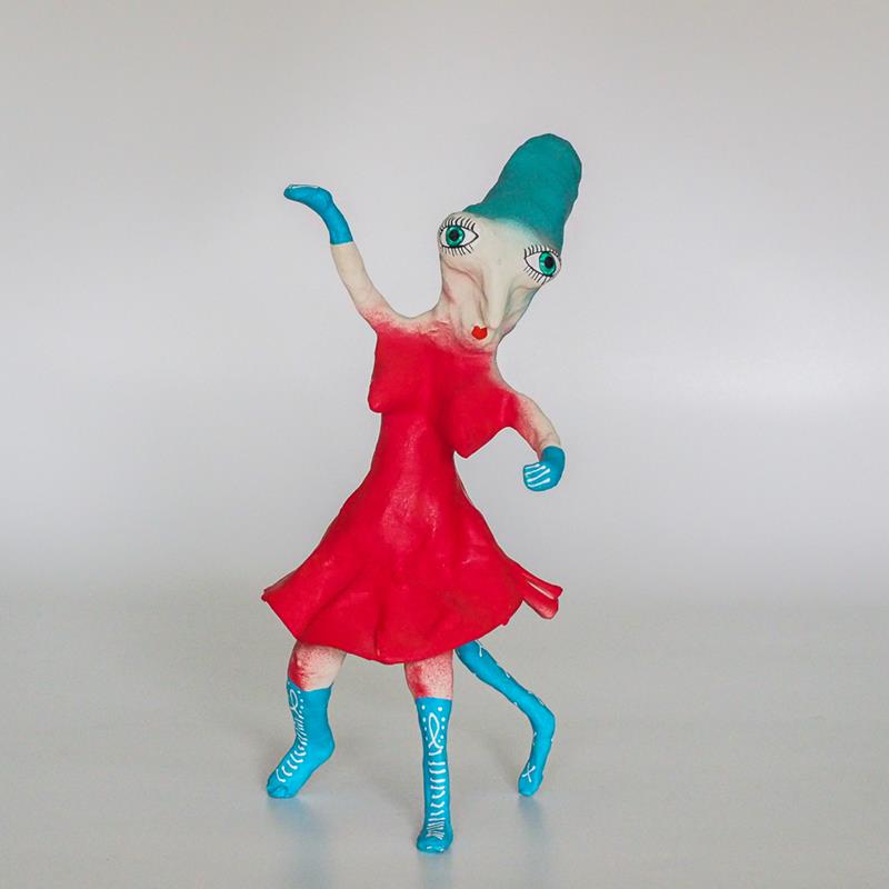 Sculpture amusante d'une danseuse en papier mâché fabriqué à la main avec des matériaux de première qualité et peint avec une combinaison de techniques anciennes et modernes, telles que les résines synthétiques sur une base à la craie traditionnelle ou sur la peinture à la tempe.