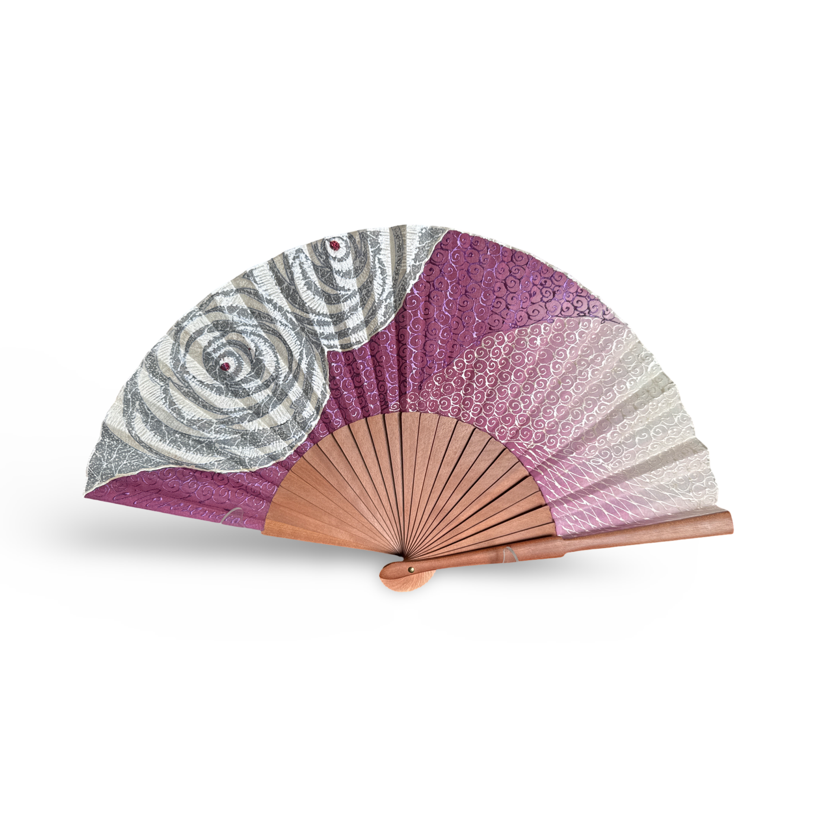 Ventall amb fusta de perer i tela de cotó pintat a mà per artesans catalans inspirat en les tradicionals blondes que decoraven els vestits