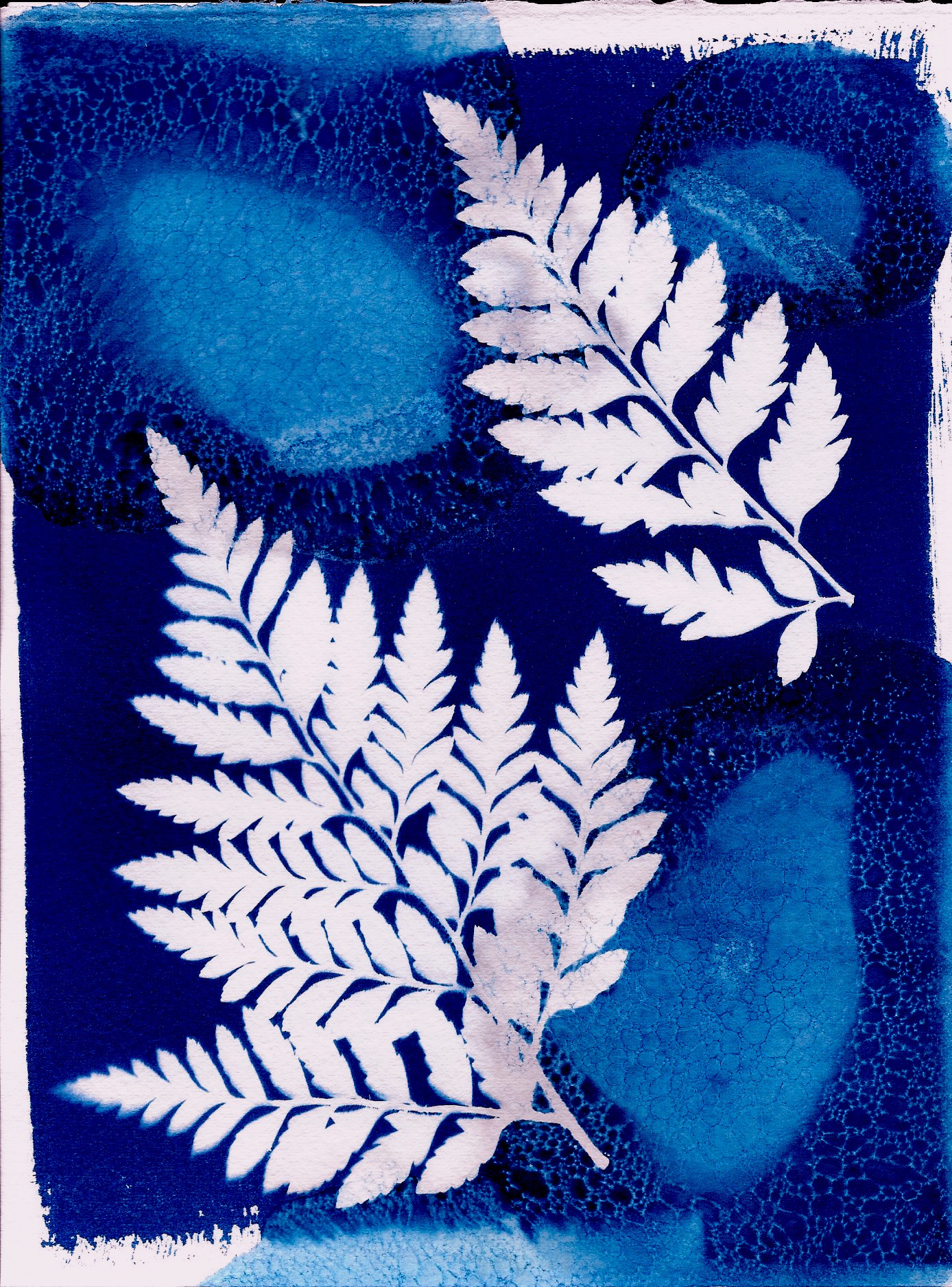 La cianotípia és una tècnica de fotografia antiga que proporciona unes imatges úniques que no es poden tornar a repetir. El procedimento consisteix en sensibilitzar un full de paper amb una barreja de productes químics, col·locar l'objecte que es vol reproduir al damunt -en aquest cas són motius vegetals- i deixar-lo una estona que s'impressioni al sol o a qualsevol altra font de llum ultraviolada. Posteriorment s'esbandeix amb aigua per eliminar les restes químiques i es deixa assecar en un lloc fosc perquè es reveli el color blau amb tota la seva intensitat. El resultat és una imatge en negatiu sobre un fons d'un color blau, conegut com a blau de Prússia.